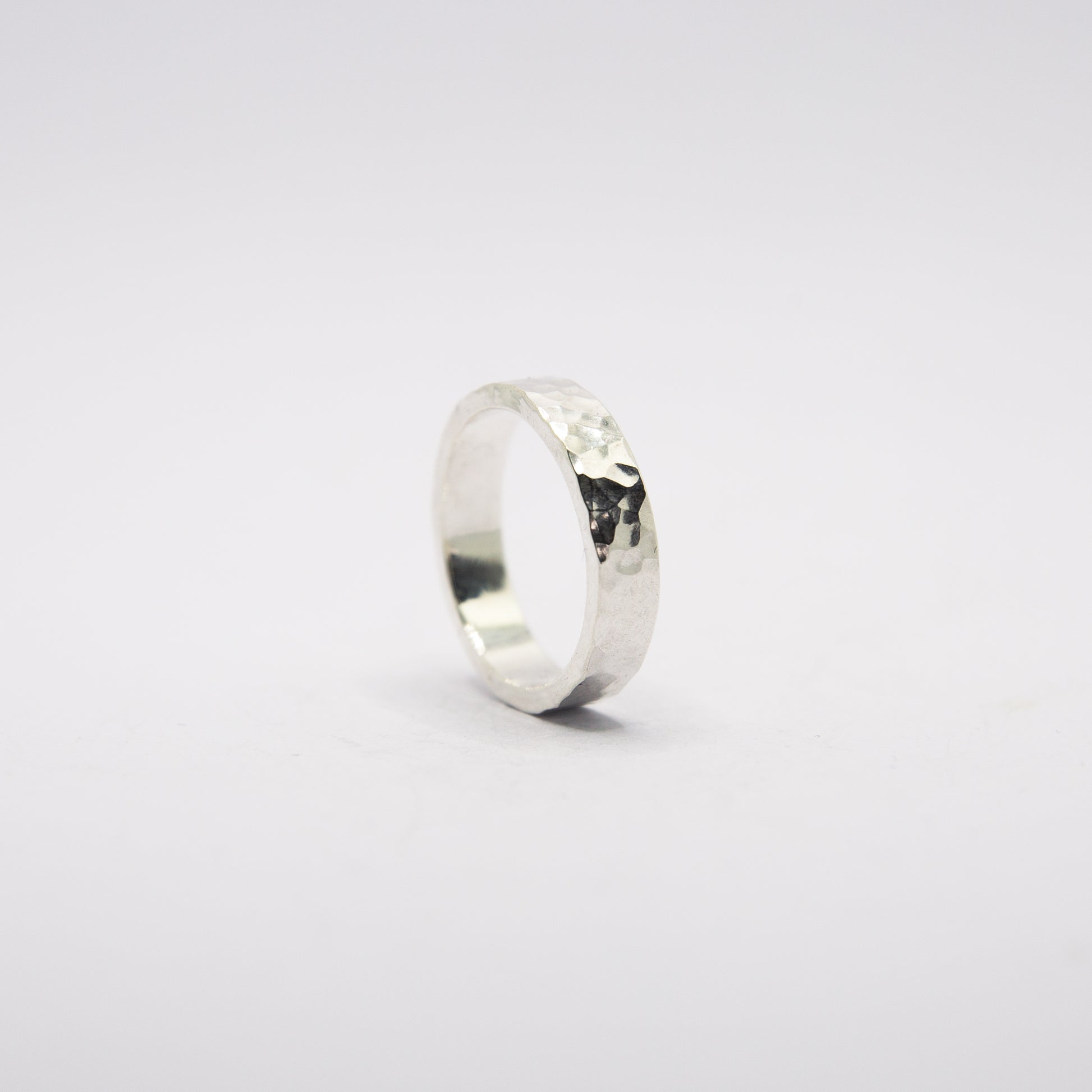The Rya band, a 5mm wide band, bashed out with a hammer to have a crater like finish. This one is a crowd favourite.