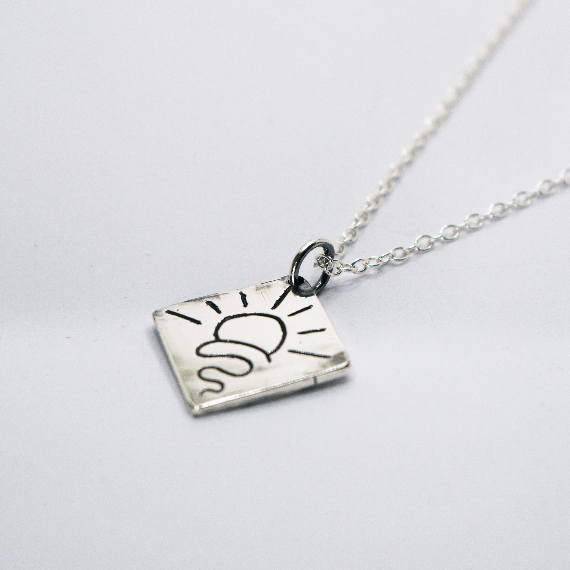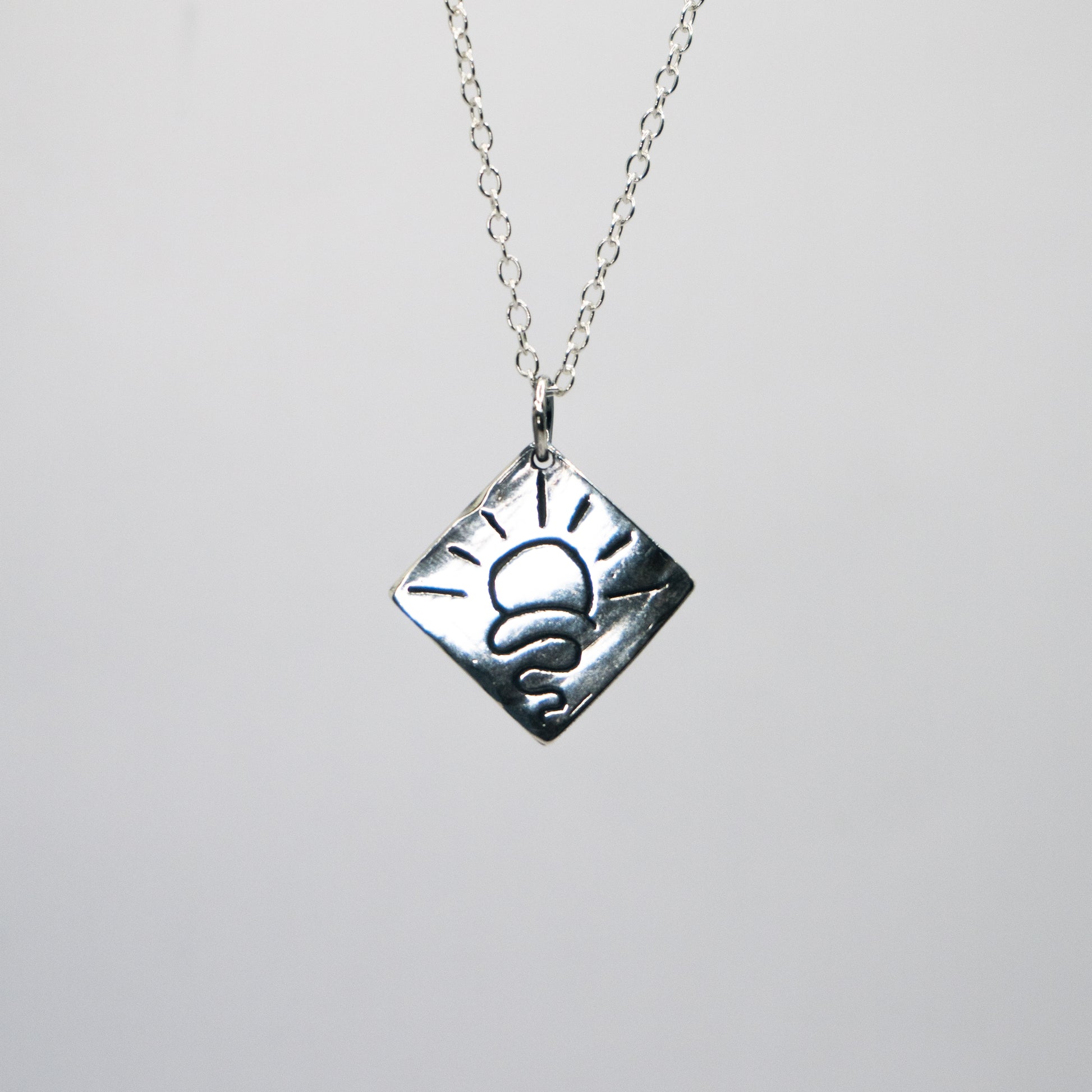 Inspired from chasing your happy place. Pendant comes on a 55cm cable chain.